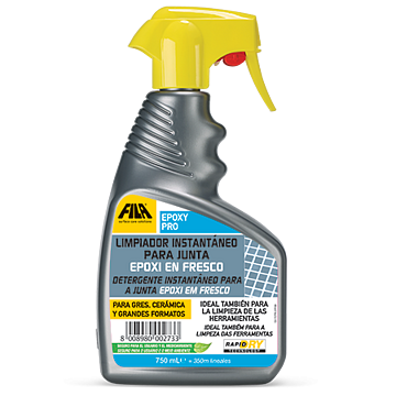 Pulverizar EPOXY PRO sobre a superfície de modo uniforme. Deixar atuar max. 2- a 3 minutos. Passar esponja na superfície. e realizar a limpeza depois de umas horas do rejuntamento, deixar atuar o produto durante uns 20 minutos.