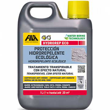 Hidrorepelente em base de água, com efeito natural. Impermeabiliza o material em profundidade conservando sua transpiração. Impede o crescimento de verdete, algas, mofo. Protege pedra natural, grés rústico contra o desgaste dos agentes atmosféricos.